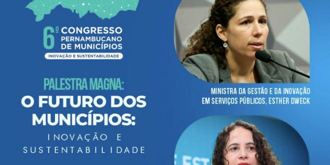 O 6º Congresso Pernambucano de Municípios, evento promovido pela Associação Municipalista de Pernambuco (Amupe), que vai acontecer entre os dias 28 e 30 de agosto no Centro de Convenções de Pernambuco, terá a participação das ministras da Gestão e da Inovação em Serviços Públicos, Esther Dweck e Ciência, Tecnologia e Inovação, Luciana Santos e promete enriquecer as discussões sobre “O Futuro dos Municípios: Inovação e Sustentabilidade”.