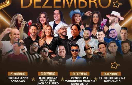 O evento contará com apresentações distribuídas entre os dias 29 de novembro e 07 de dezembro, reunindo nomes de destaque no cenário musical e valorizando também talentos regionais.
