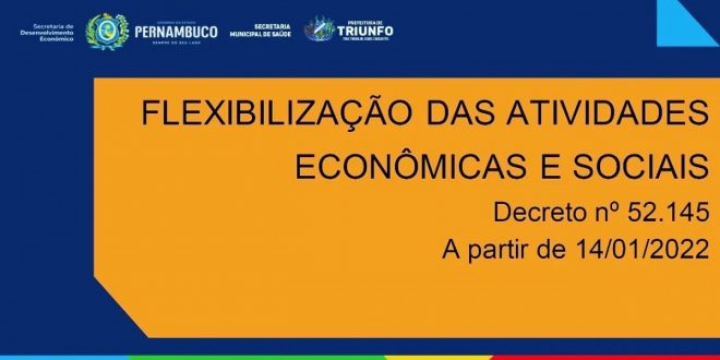A Prefeitura de Triunfo, de acordo com Decreto Estadual n° 52.145/2022, informa o funcionamento das atividades econômicas e sociais em todo território do Município de Triunfo.