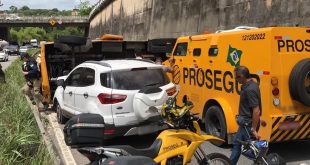 Um carro-forte tombou após o motorista perder o controle do veículo na BR-230, no trecho próximo ao viaduto da Avenida Ministro José Américo de Almeida, a Beira Rio, em João Pessoa, na manhã desta segunda-feira (3). De acordo com a Polícia Rodoviária Federal (PRF), duas pessoas ficaram levemente feridas no acidente, que aconteceu às 9h40 e deixou o trânsito interditado nos dois sentidos da via até as 11h30. O motorista do carro-forte, que não quis se identificar, disse que seguia devagar, no sentido João Pessoa – Bayeux quando a roda do veículo travou. “Foi um descontrole no carro. Eu tentei segurar, mas ele puxou para a lateral e acabou tombando para a esquerda. Vinham quatro pessoas no carro, mas tivemos …