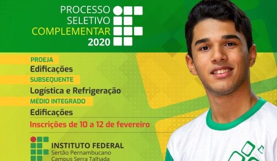 O Campus Serra Talhada do IF Sertão-PE publicou nesta sexta-feira (07) editais de seleção complementar para preenchimento de vagas remanescentes nos cursos: Ensino Médio Integrado – Edificações, Técnico em Logística e Técnico em Refrigeração, na modalidade subsequente e Técnico em Edificações – PROEJA.