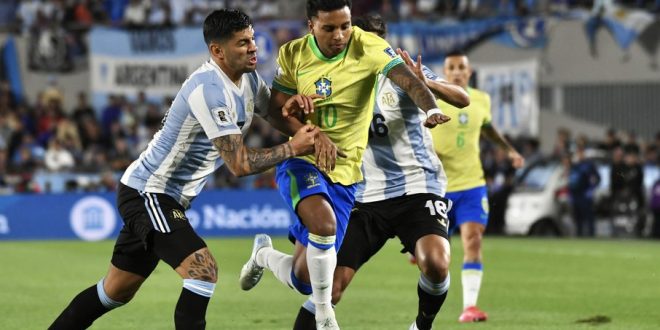 O “clima de guerra” criado após a polêmica declaração de Raphinha ao ex-jogador Romário não se mostrou no início do duelo, com a Argentina dominando a equipe comandada por Dorival Júnior em todos os sentidos.