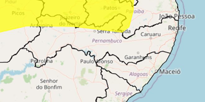 Vai chover forte em 32 municípios do Sertão de Pernambuco nesta terça-feira (10) e quarta. É o que prevê o Instituto Nacional de Meteorologia (Inmet). Na atualização da manhã desta terça, o Inmet registrou risco de chuvas com “Perigo Potencial” para 32 municípios do Sertão pernambucano, situados nos limites dos estados da Paraíba, Ceará e Piauí. O risco de severidade “Perigo Potencial”, ou bandeira amarela, indica acúmulo de chuva entre 20 e 30 mm, a hora, ou até 50 mm, o dia, com ventos intensos (40-60 km/h). Um dos municípios inclusos no alerta do Inmet é Araripina, no extremo oeste pernambucano. Segundo o monitoramento de chuva em tempo real da Agência Pernambucana de Águas e Clima (Apac), Araripina apresentava um acúmulo de …