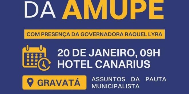 A Associação Municipalista de Pernambuco (Amupe) realiza, nesta terça-feira (20), em Gravatá, a Assembleia Extraordinária da entidade, reunindo prefeitos e prefeitas de diversas regiões do estado. O encontro tem como objetivo discutir temas prioritários da pauta municipalista e promover o alinhamento entre os gestores sobre desafios e estratégias voltadas à administração pública local. A assembleia contará com a presença da governadora de Pernambuco, Raquel Lyra, que deve apresentar aos gestores municipais detalhes sobre o processo de concessão da Companhia Pernambucana de Saneamento (Compesa). O tema é considerado estratégico para os municípios, diante dos impactos diretos na gestão dos serviços de abastecimento de água e saneamento básico em todo o estado. Aberto à cobertura da imprensa, o encontro acontece a partir …