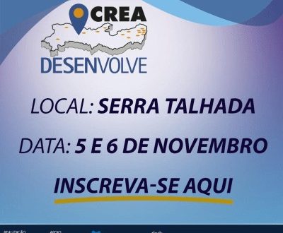 Leia maisSerra Talhada recebe segunda edição do Crea Desenvolve nos dias 5 e 6 de novembro