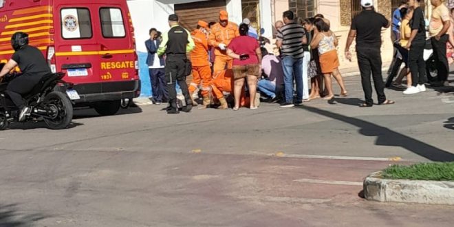 Na manhã desta quinta-feira (03), uma mulher ficou ferida e possivelmente com fratura no pé, após uma colisão contra um carro Fiat Strada.