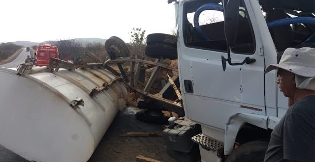 Dessa vez, o veículo de transporte de água se chocou com um Fiat Uno por volta das 15h14 desta terça-feira (18), na BR-232, próximo à entrada do distrito de Bernardo Vieira.