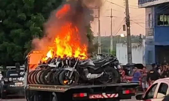O incidente aconteceu em frente à Delegacia de Polícia Civil (PC) local, chamando a atenção de muitos curiosos. As chamas se espalharam rápido, danificando as demais motos e o próprio caminhão da PRF.