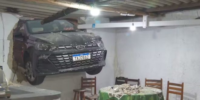 O motorista tentou intervir e jogou o veículo contra os suspeitos, arremessando-os contra um muro. O carro atravessou parcialmente a parede de um bar.