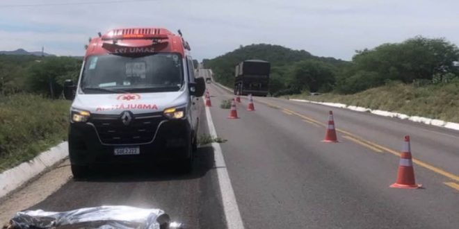 Um grave acidente com vítima fatal foi registrado na manhã desta segunda (07), no trecho da BR-232 que corta a comunidade de Tamboril dos Major, no município de Flores- PE. A colisão envolveu uma motocicleta, que transportava duas pessoas, e um pedestre que tentava atravessar a rodovia.