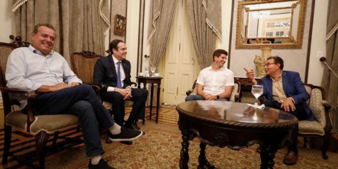 O governador Paulo Câmara recebeu no Palácio do Campo das Princesas o presidente nacional do PSB, Carlos Siqueira, o prefeito João Campos, e o deputado federal Danilo Cabral, pré-candidato do partido a governador.