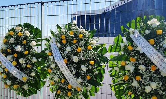 Foram colocadas 27 coroas – segundo a organização, uma para cada unidade da federação. Nas coroas, estão grafados os nomes dos ministros que votaram pela absolvição (Gilmar Mendes, Napoleão Maia, Admar Gonzaga e Tarcísio Vieira) e a frase “Aqui jaz o TSE, assassinado pelos 4 ministros que absolveram a chapa Dilma-Temer”.