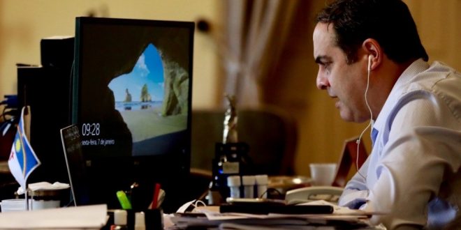 O governador Paulo Câmara se reuniu, na manhã desta sexta-feira (07.01), por videoconferência, com prefeitos de todas as regiões do estado para compartilhar o atual momento da pandemia da Covid-19 e a aceleração dos casos de Influenza. Paulo Câmara assegurou que a ampliação da rede de leitos de terapia intensiva, do número de testes rápidos e o incentivo à vacinação serão intensificados. O governador solicitou ainda a colaboração dos prefeitos para o reforço no atendimento nas unidades municipais de saúde. Também estiveram presentes na conversa o presidente da Associação Municipalista de Pernambuco (Amupe), José Patriota; o procurador-geral do Ministério Público de Pernambuco, Paulo Augusto de Freitas Oliveira; e o secretário estadual de Saúde, André Longo.