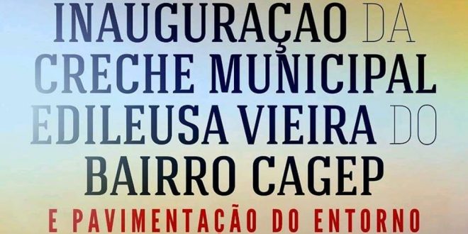 Nesta sexta-feira (15), às 08h, o governo inaugura a Creche Municipal Edileusa Vieira, no bairro da Cagep, um investimento de R$ 1, 3 milhão, em parceria com o Governo Federal.