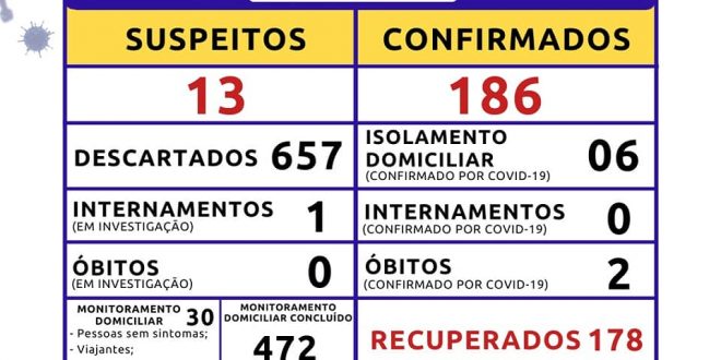 Já o número de monitoramento domiciliar com 30 pessoas e 472 concluíram o monitoramento. Lembramos mais uma vez que esse número é referente a pessoas que vieram de outros municípios/estados (viajantes); pessoas sem sintomas e/ou que tiveram contato com viajantes ou casos confirmados, por orientação e prevenção devem permanecer em isolamento domiciliar por 14 dias, sendo acompanhados pela Vigilância em Saúde e pela equipe de Atenção Básica do município na possível ocorrência de algum sintoma relacionado ao COVID-19.