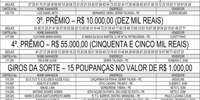 Resultado deste domingo (23) no Serra da Sorte 23 de julho de 2023 SERRA DA SORTECompartilhar nas Redes