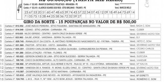 Resultado do Serra da da Sorte deste domingo (27) 28 de outubro de 2019 SERRA DA SORTE Compartilhar nas Redes