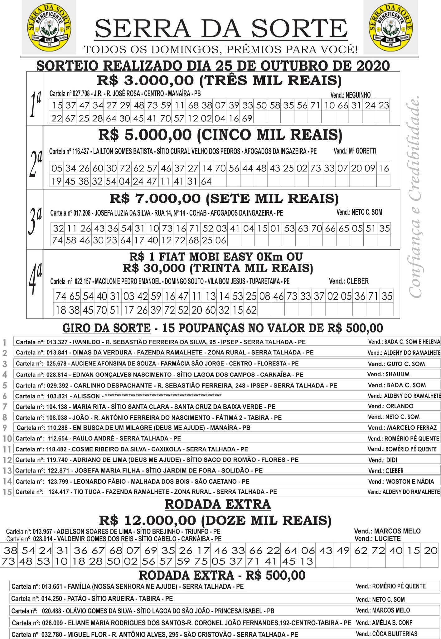 Resultado do Serra da Sorte deste domingo (25) 25 de outubro de 2020 SERRA DA SORTECompartilhar nas Redes