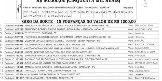 Resultado do Serra da Sorte, deste domingo, 29 de dezembro de 2019.