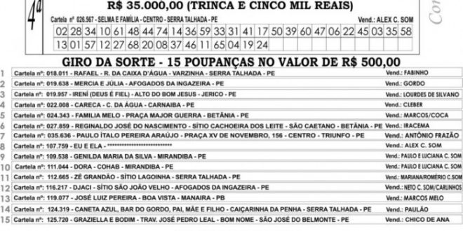 Sorteio do Serra da Sorte, deste domingo (29) 29 de agosto de 2021 SERRA DA SORTECompartilhar nas Redes