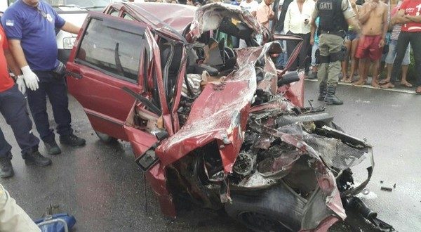 Carro trafega na contramão na BR-101, bate em caminhão e duas pessoas morrem em PE